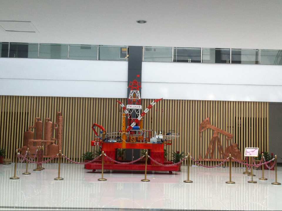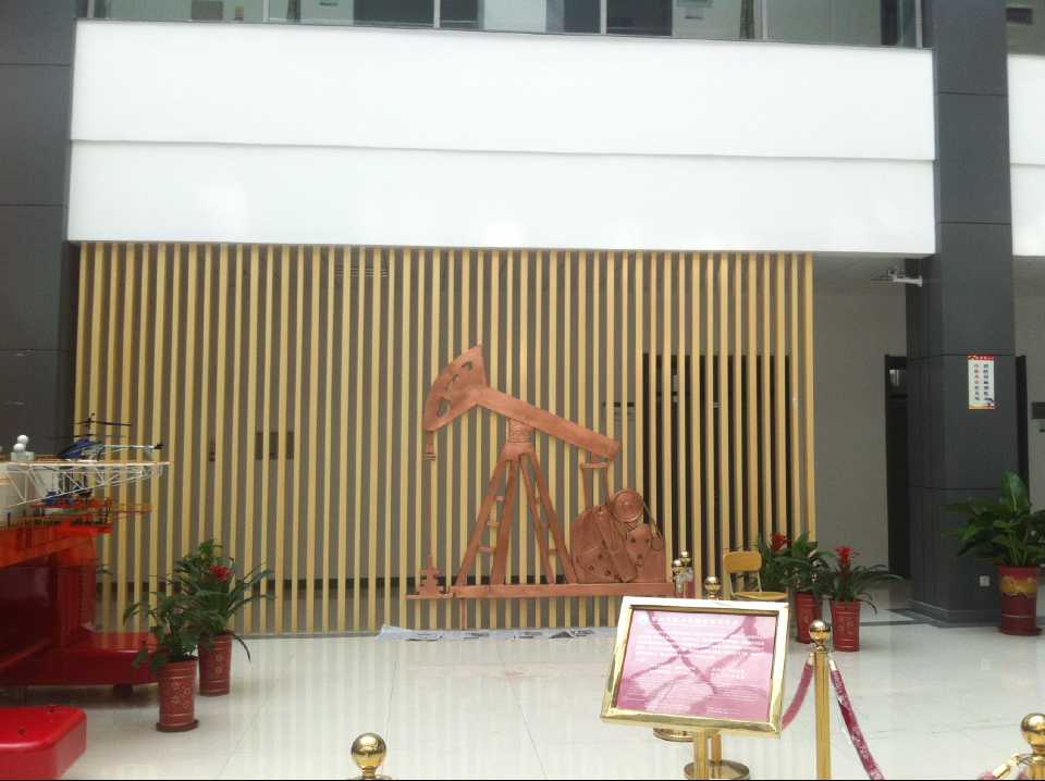 抽油機及化工廠鍛銅浮雕,2015年10月23日安裝于中國石油大學華東分校(青島市黃島區(qū))。材質(zhì):紫銅板。工藝:手工鍛銅。高:2.19米。