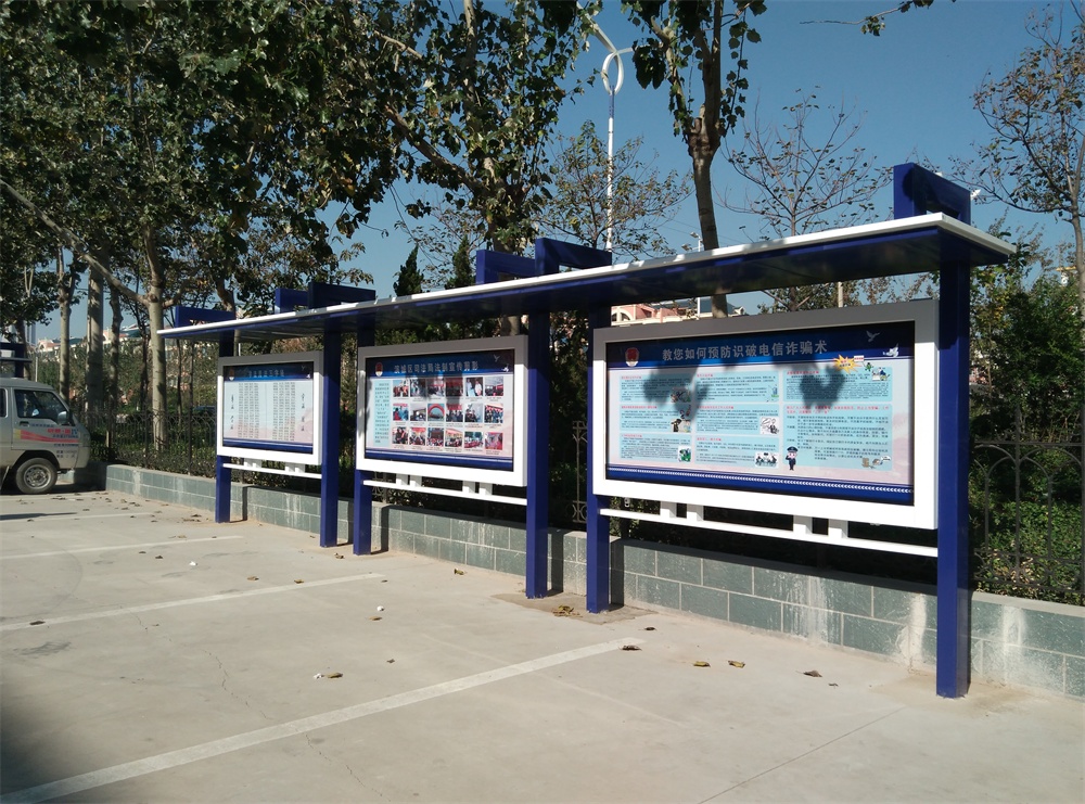 兩欄的宣傳欄高度為3米,長6米,箱體2600mm*1400mm;三欄的宣傳欄,高2.7米,長9米,箱體尺寸為1200mm*2400m。