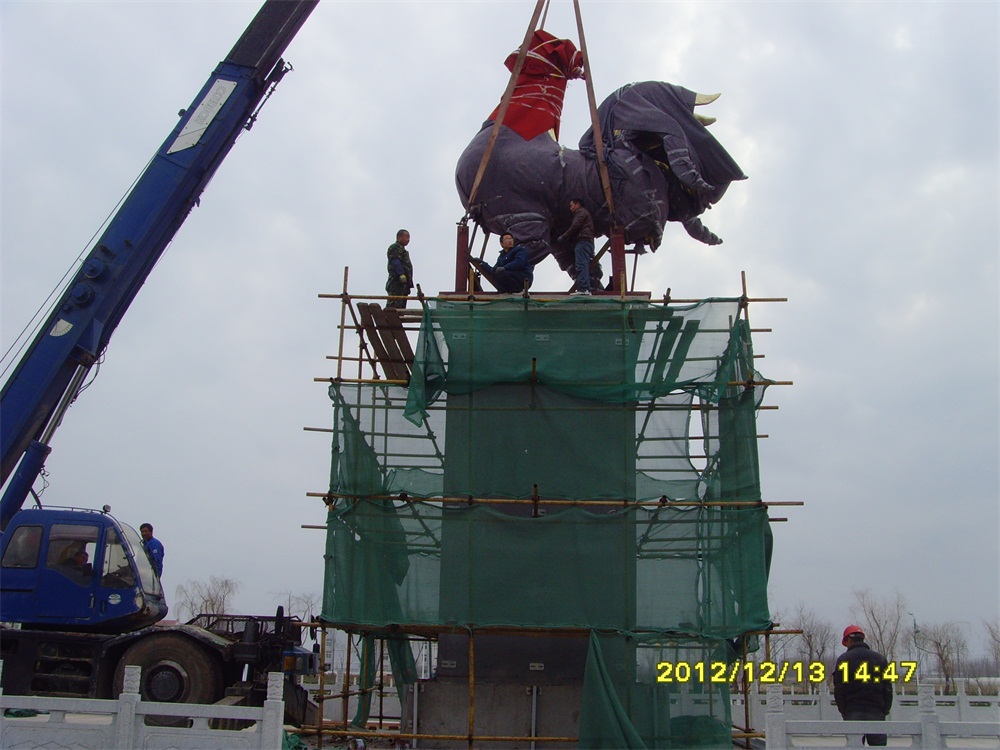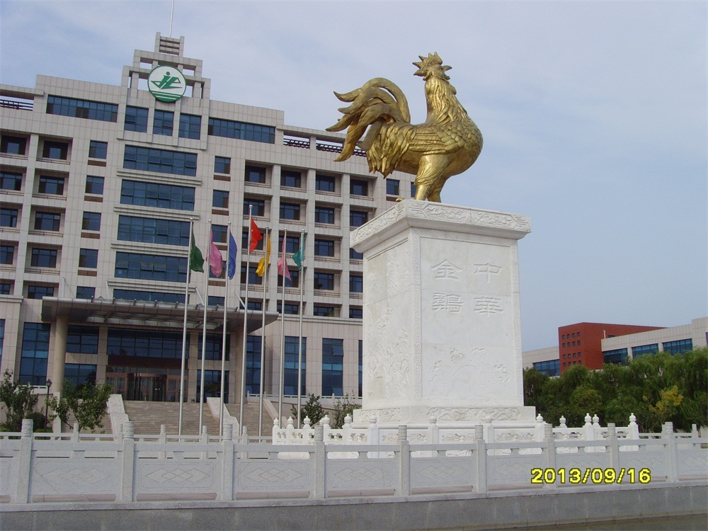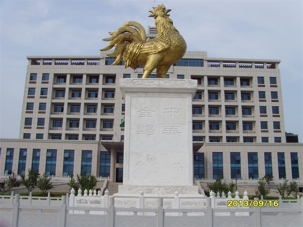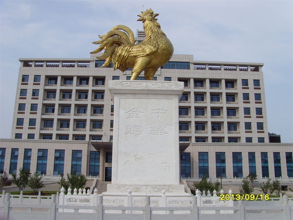 2013年6月,大型鑄銅鎏金雕塑——“金雞雕塑”及漢白玉浮雕落成。安裝于青島市萊西市上海西路青島九聯(lián)集團(tuán)股份有限公司總部。該雕塑工程從2012年5月開(kāi)始施工,歷時(shí)13個(gè)月。