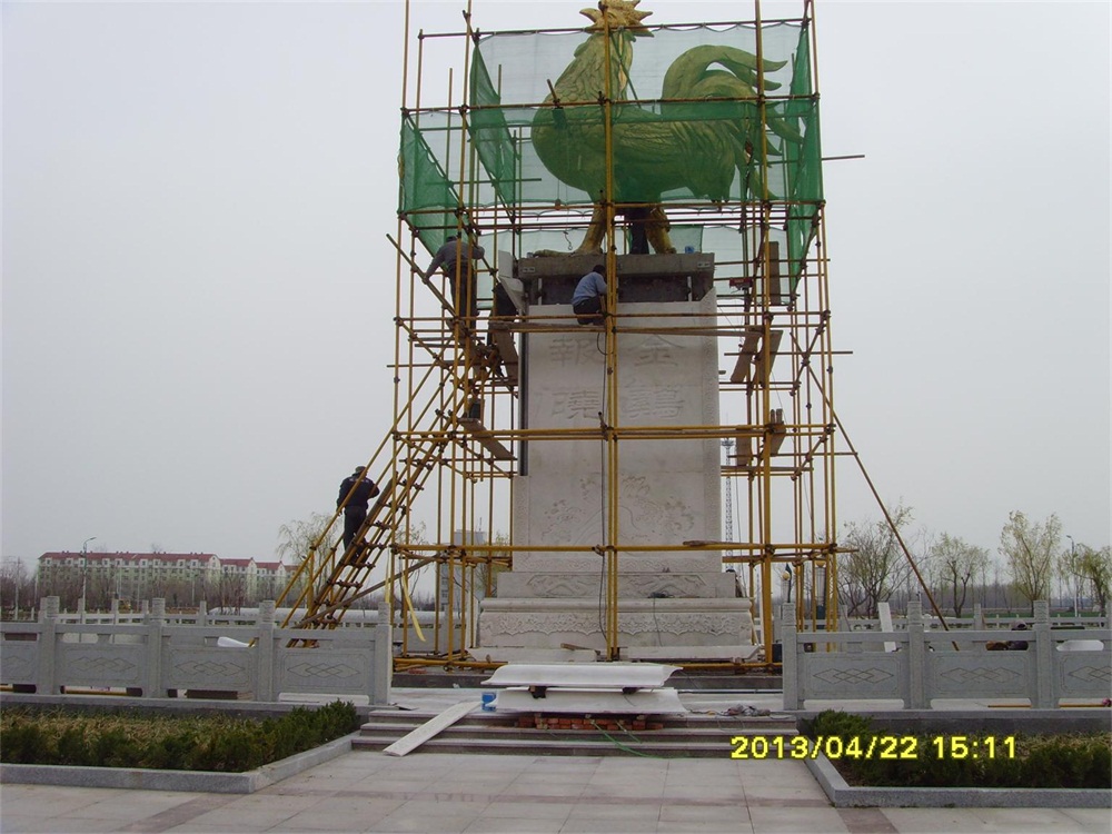 項(xiàng)目案例->金雞雕塑(鑄銅鎏金/漢白玉浮雕底座)