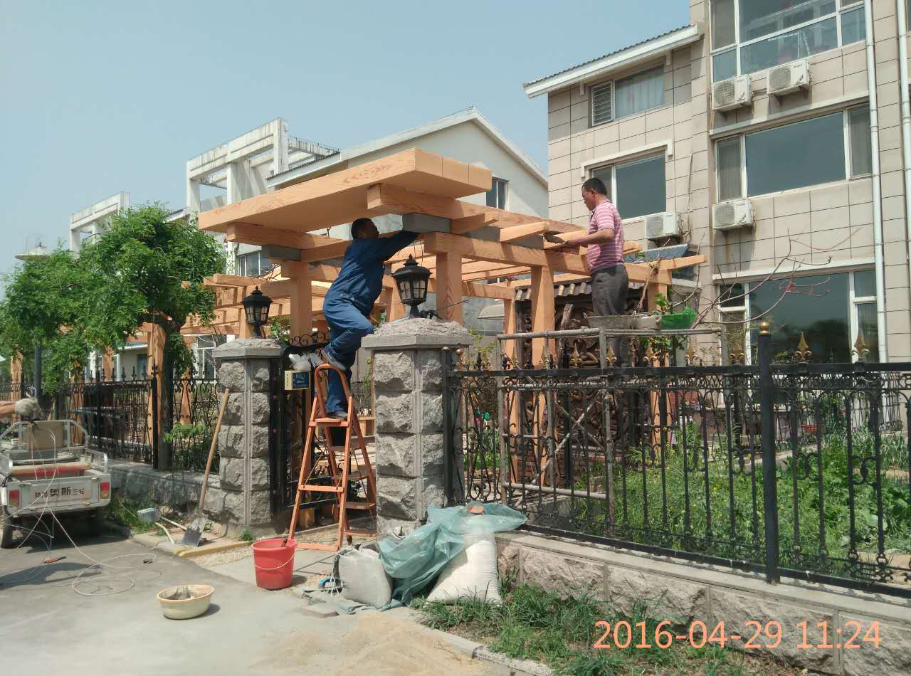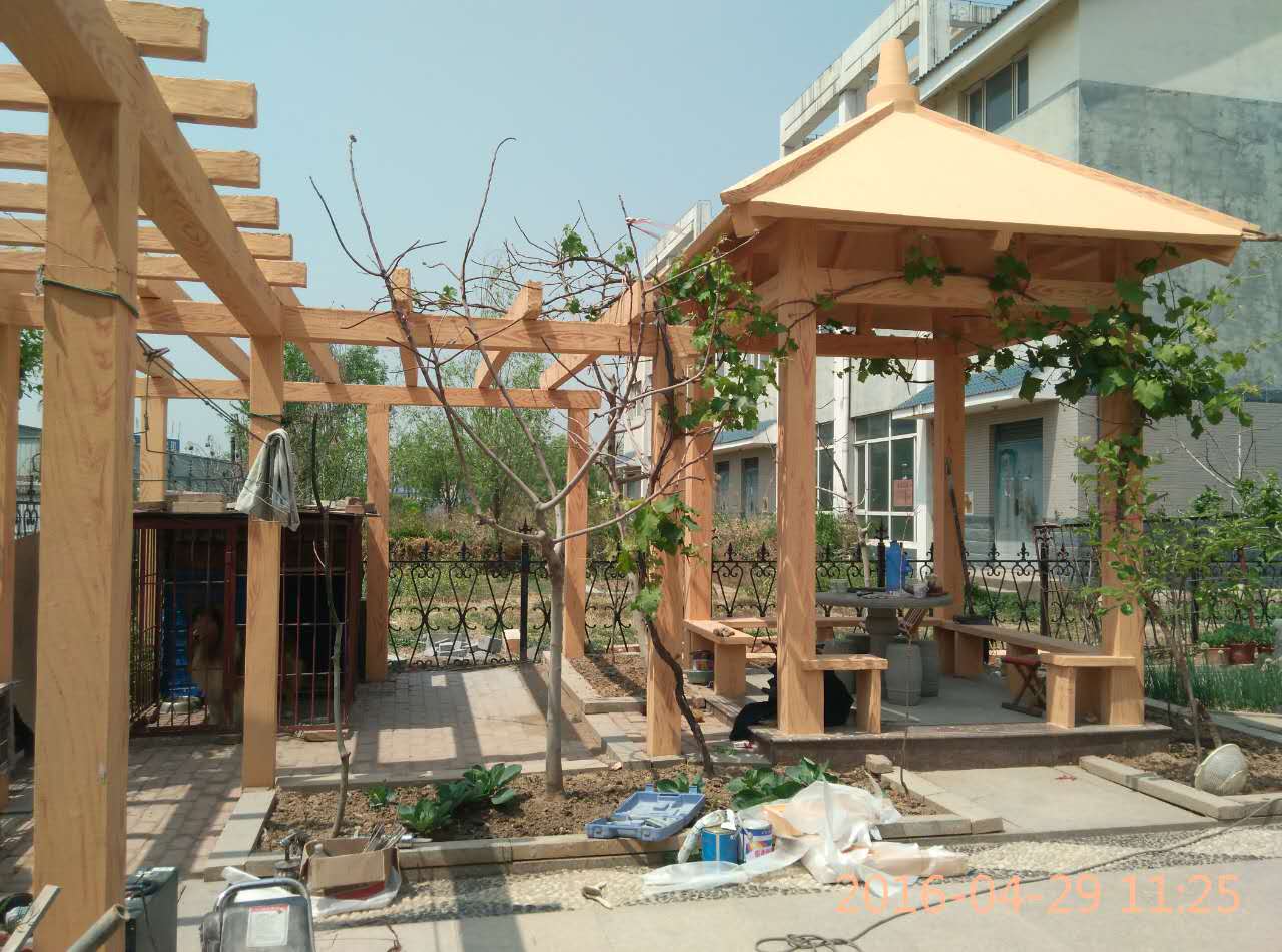 施工內容:水泥仿木長廊、藤架、水泥仿木涼亭,水泥浮雕。