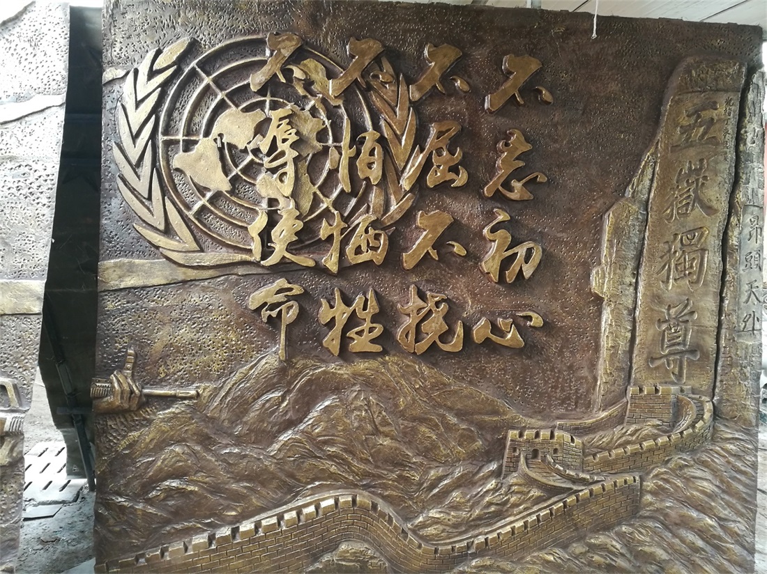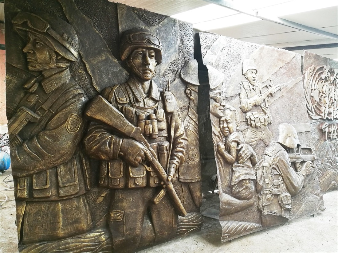 大型部隊維和題材的玻璃鋼浮雕施工完畢。