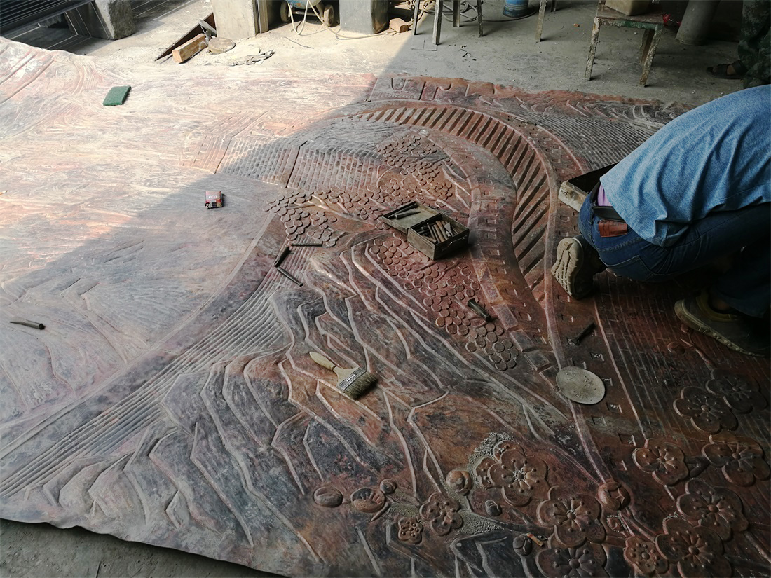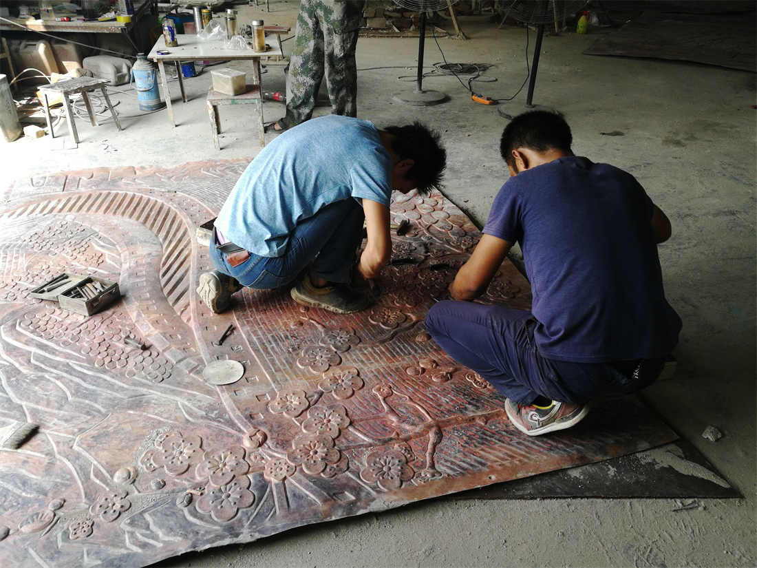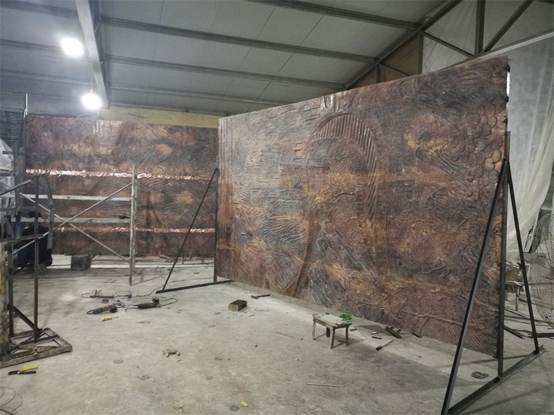 hj2751 鍛銅雕塑施工現(xiàn)場_大型鍛銅浮雕——長城_濱州宏景雕塑有限公司