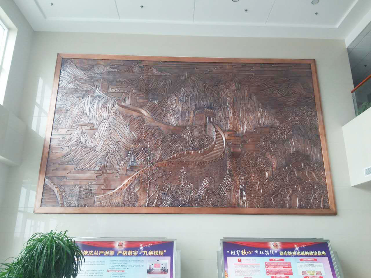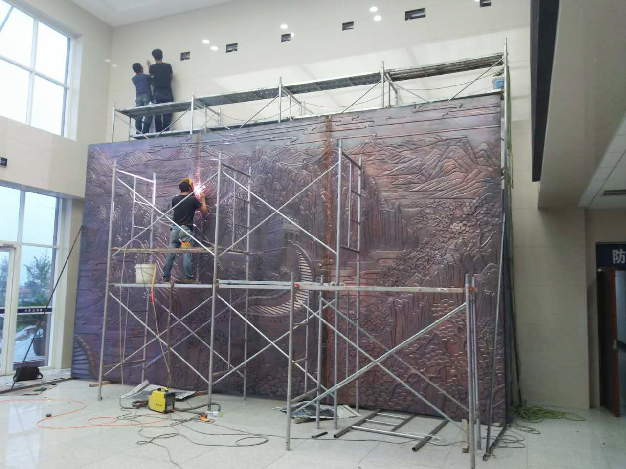 大型鍛銅浮雕——長城安裝完成。