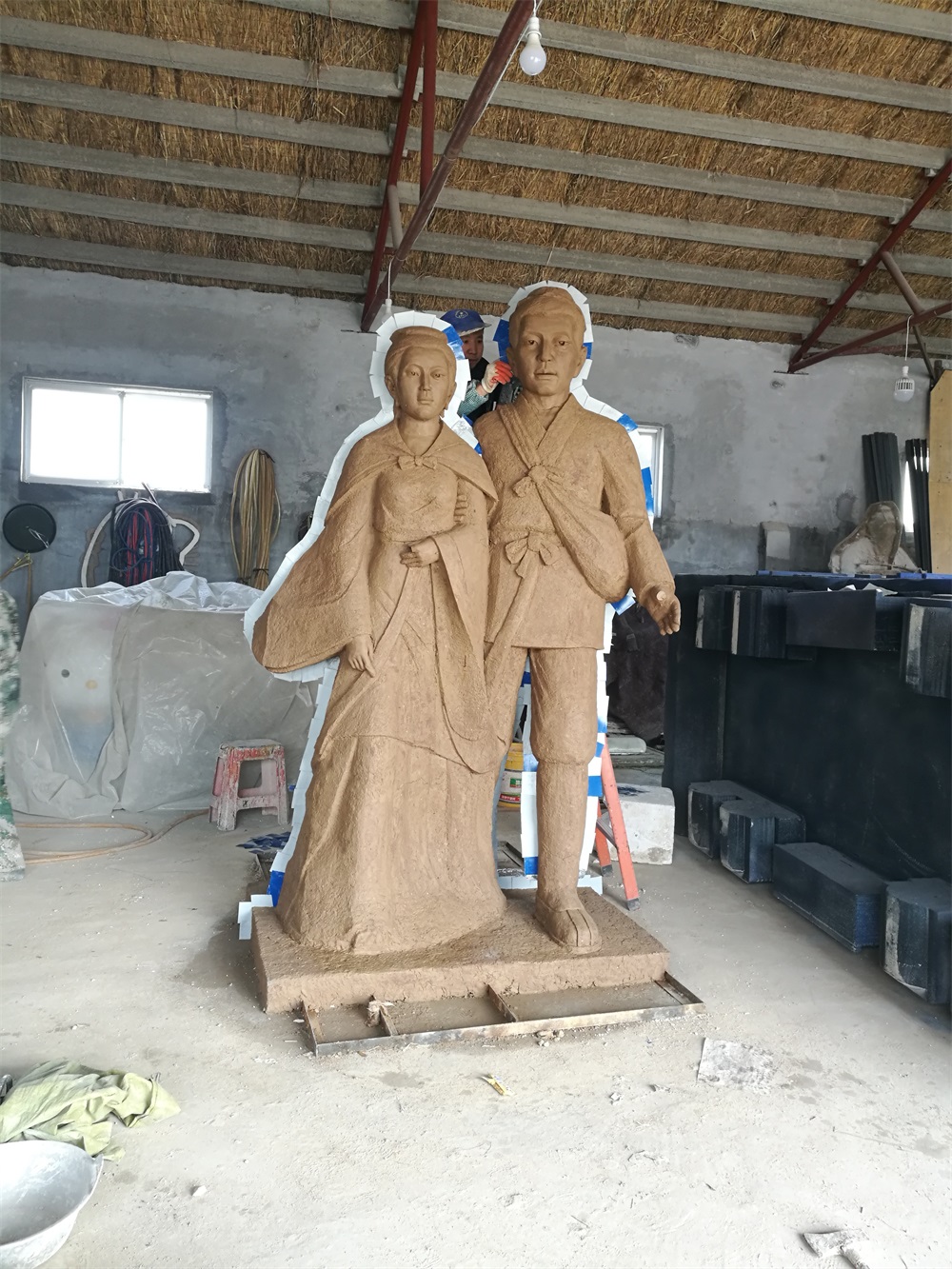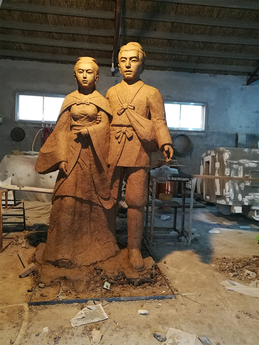 雕塑說(shuō)明:雕塑高2.6米,以董永與七仙女的故事為題材創(chuàng)作。雕塑采用玻璃鋼雕塑工藝,表面仿石材效果。該雕塑由泥塑師王慶波創(chuàng)作,未經(jīng)允許嚴(yán)禁把圖片用于商業(yè)用途。