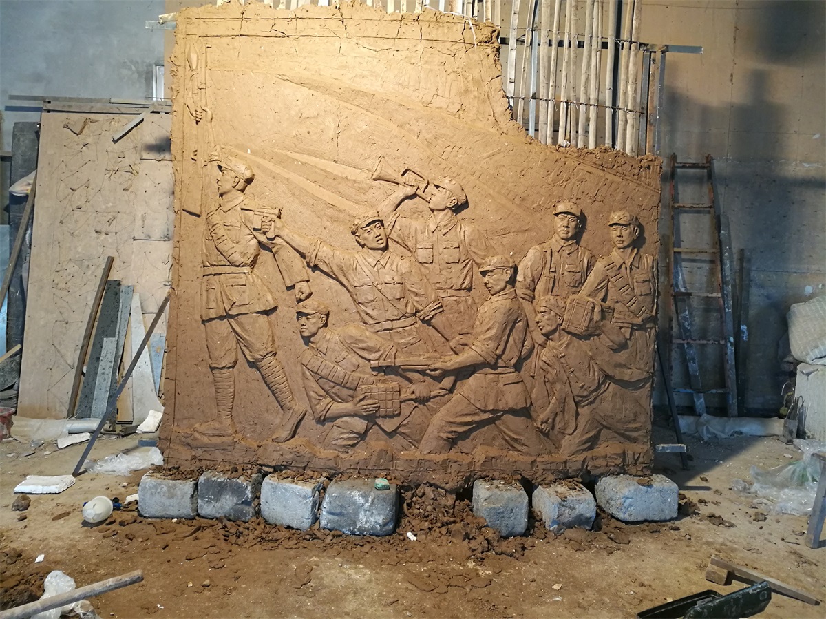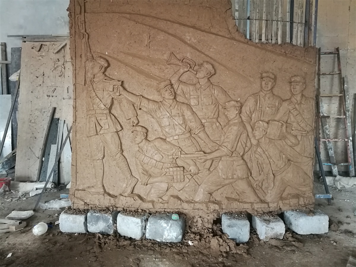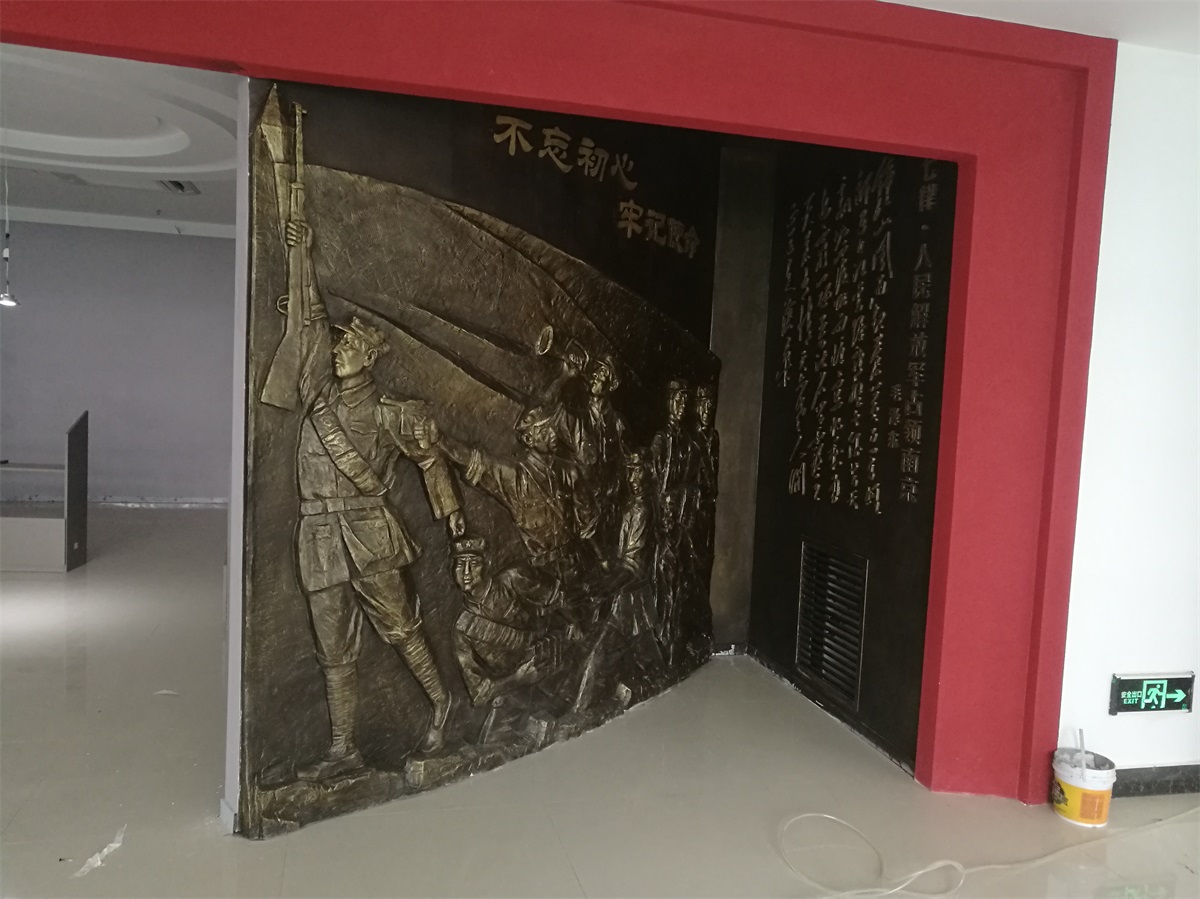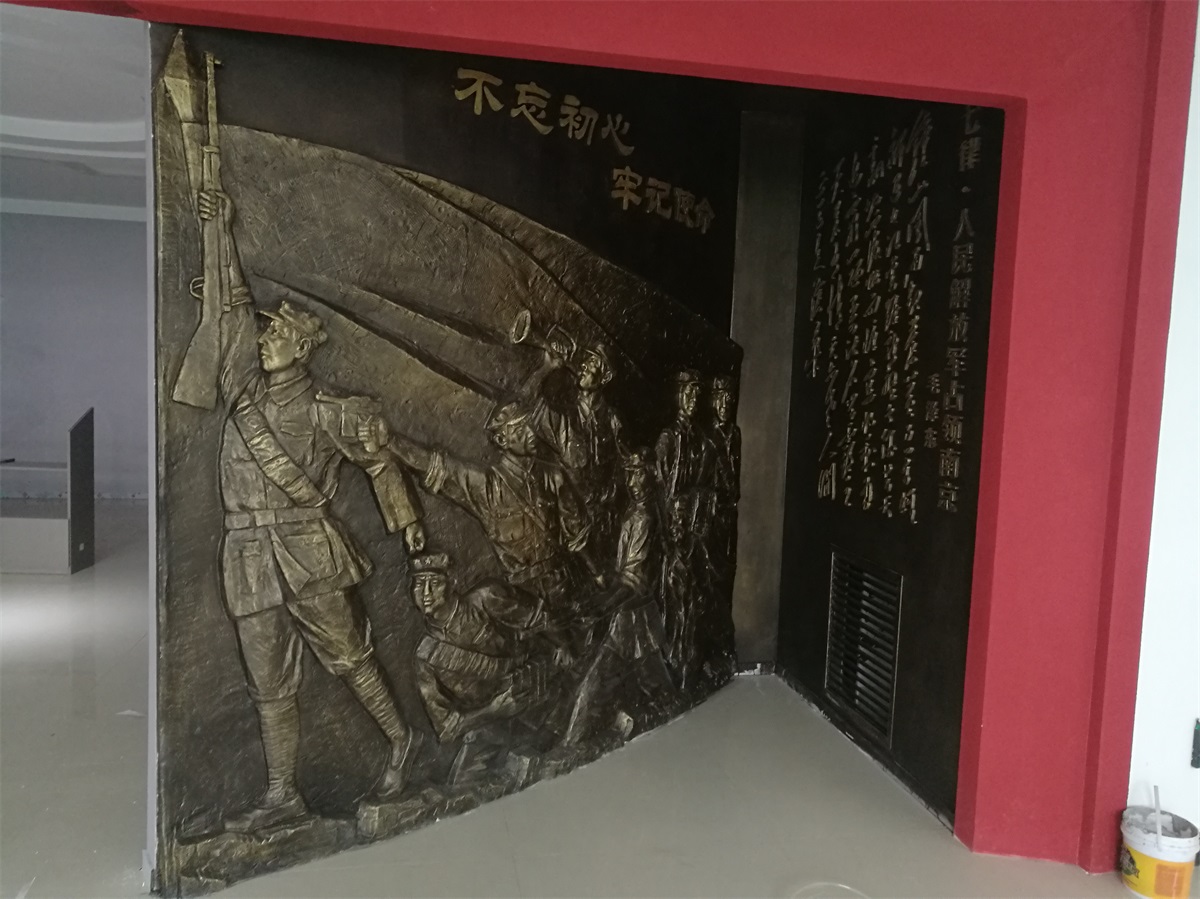 安裝地點(diǎn):山東省濱州市技術(shù)學(xué)院文化展館形式及風(fēng)格:以抗戰(zhàn)題材為主創(chuàng)作,體現(xiàn)渤海革命老區(qū)英勇無(wú)畏、誓死衛(wèi)國(guó)的抗戰(zhàn)精神。以浮雕形式體現(xiàn),玻璃鋼材質(zhì)、表面做仿古銅色。