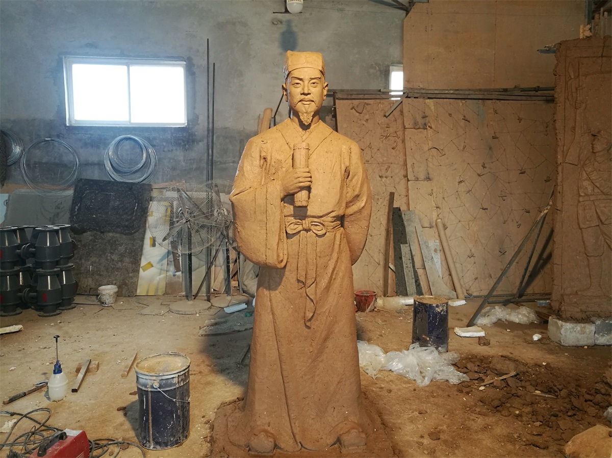 材質(zhì)工藝:規(guī)格為等大人物,高2米,玻璃鋼材質(zhì),仿古銅色。