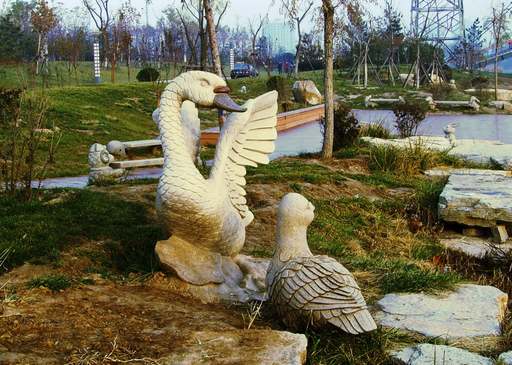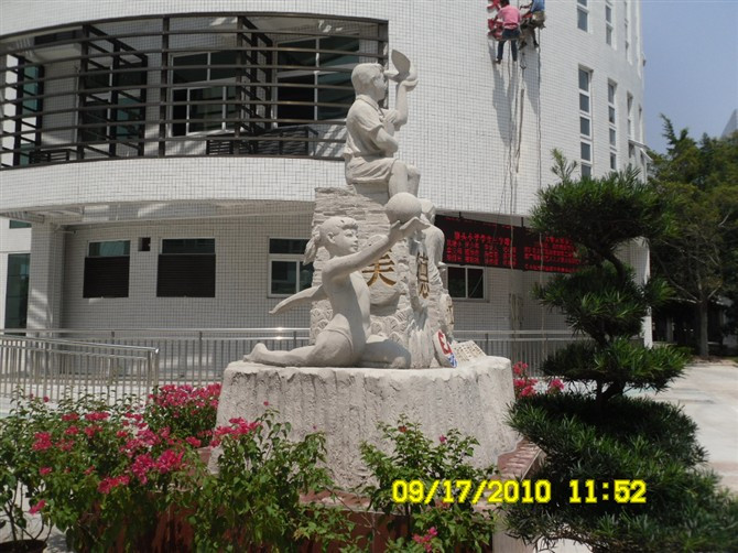 石材雕塑展示。石雕,指用各種可雕、可刻的石頭,創(chuàng)造出具有一定空間的可視、可觸的藝術形象,借以反映社會生活、表達藝術家的審美感受、審美情感、審美理想的藝術。常用的石材有花崗石、大理石、青石、砂石等。石材質量堅硬耐風化,是大型紀念性雕塑的主要材料。