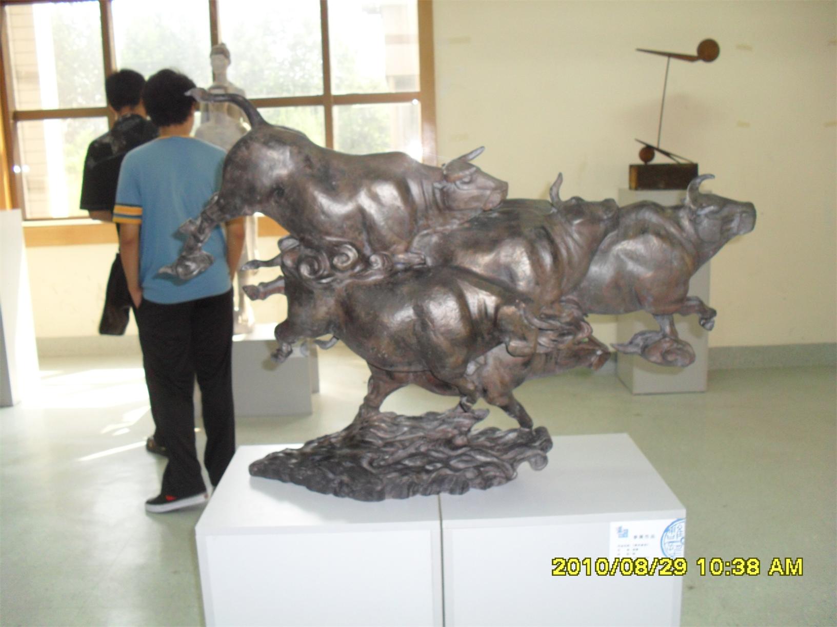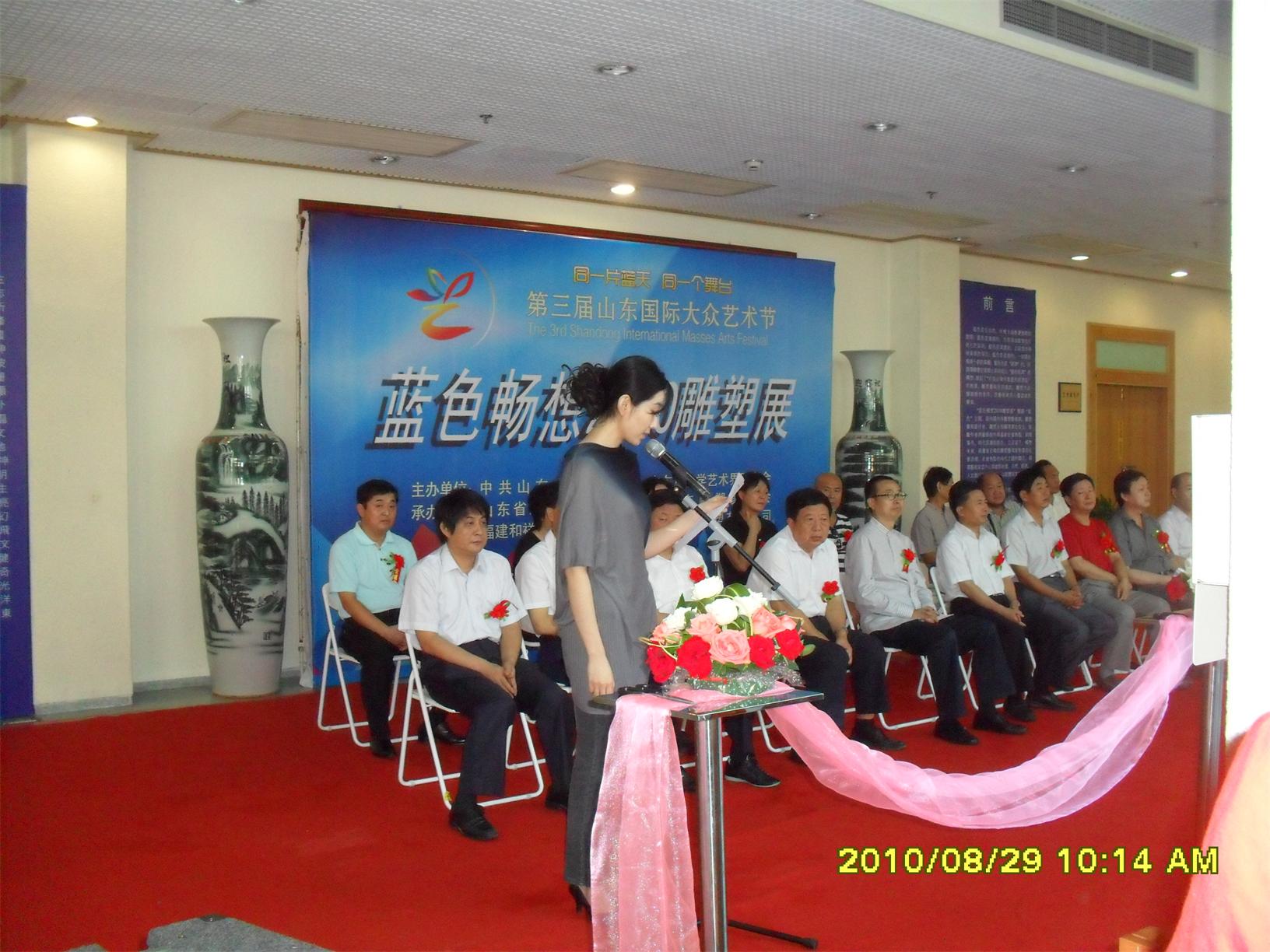藍(lán)色暢想2010雕塑,2010年8月29日,由中共山東省委宣傳部、山東省文學(xué)藝術(shù)界聯(lián)合會主辦,山東省雕塑藝術(shù)家協(xié)會、青島雕塑家協(xié)會承辦的第三屆山東國際大眾藝術(shù)節(jié)--藍(lán)色暢想2010雕塑展在山東省圖書館隆重開幕。 "藍(lán)色暢想2010雕塑展"吸引了省內(nèi)外大批中青年雕塑家的參與,展覽共收到101位雕塑藝術(shù)家的126件入圍作品。其中省內(nèi)中青年雕塑藝術(shù)家占絕大多數(shù),圍繞"藍(lán)色"主題,堅持創(chuàng)造、創(chuàng)新理念,創(chuàng)作了大批優(yōu)秀的雕塑藝術(shù)作品,語言生動,內(nèi)容多樣,借助不同材質(zhì)和多元化的藝術(shù)風(fēng)格,對藍(lán)色精神進行了深入的闡釋。李友生的《海風(fēng)倩影》、王未的《藍(lán)色暢想》、譚信國的《蘋果系列》等作品,均對雕塑藝術(shù)內(nèi)涵進行了深入的探索。